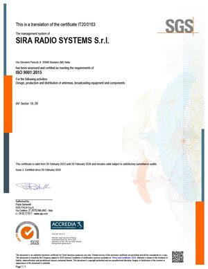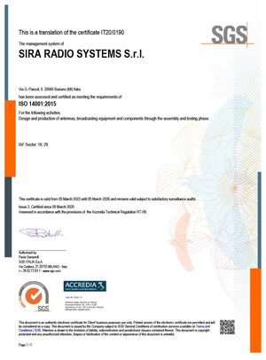 ISO 9001 – SIRA Radio Systems S.r.l.ISO 9001 – SIRA Radio Systems S.R.L.ISO 9001 certificateDownload here: ISO 9001 certificate (PDF)ISO 14001 certificateDownload here: ISO 14001 certificate (PDF)